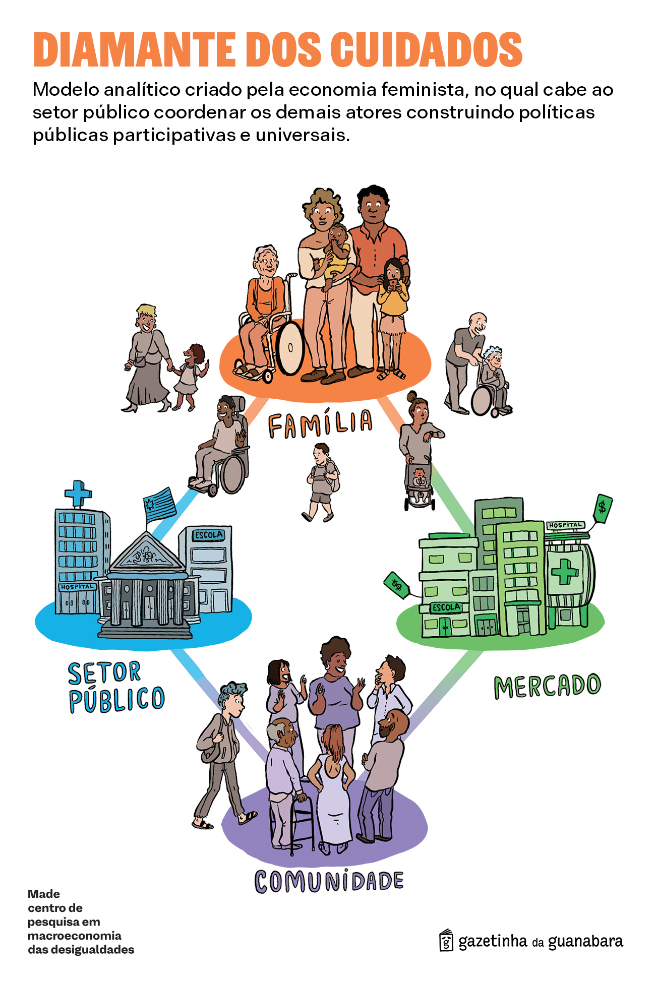 Para con­tri­buir com esse deba­te, lan­çamos a car­ti­lha “Cami­nhos para uma soci­e­da­de que cui­da: O que pode­mos apren­der com o Sis­te­ma Naci­o­nal de Cui­da­dos do Uru­guai”, uma par­ce­ria da Gaze­ti­nha da Gua­na­ba­ra com o MADE e o CIEDUR (Cen­tro Inter­dis­ci­pli­na­rio de Estu­di­os sobre Desar­rol­lo – Uru­guay).