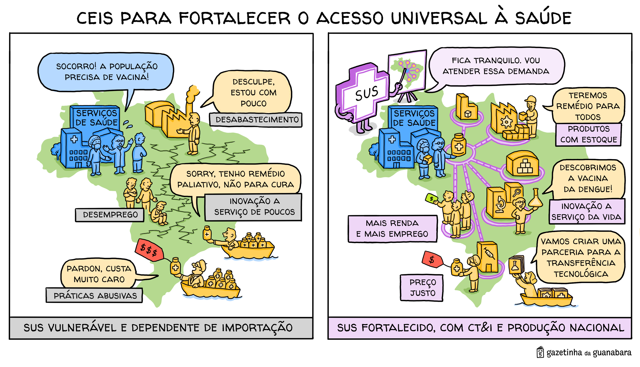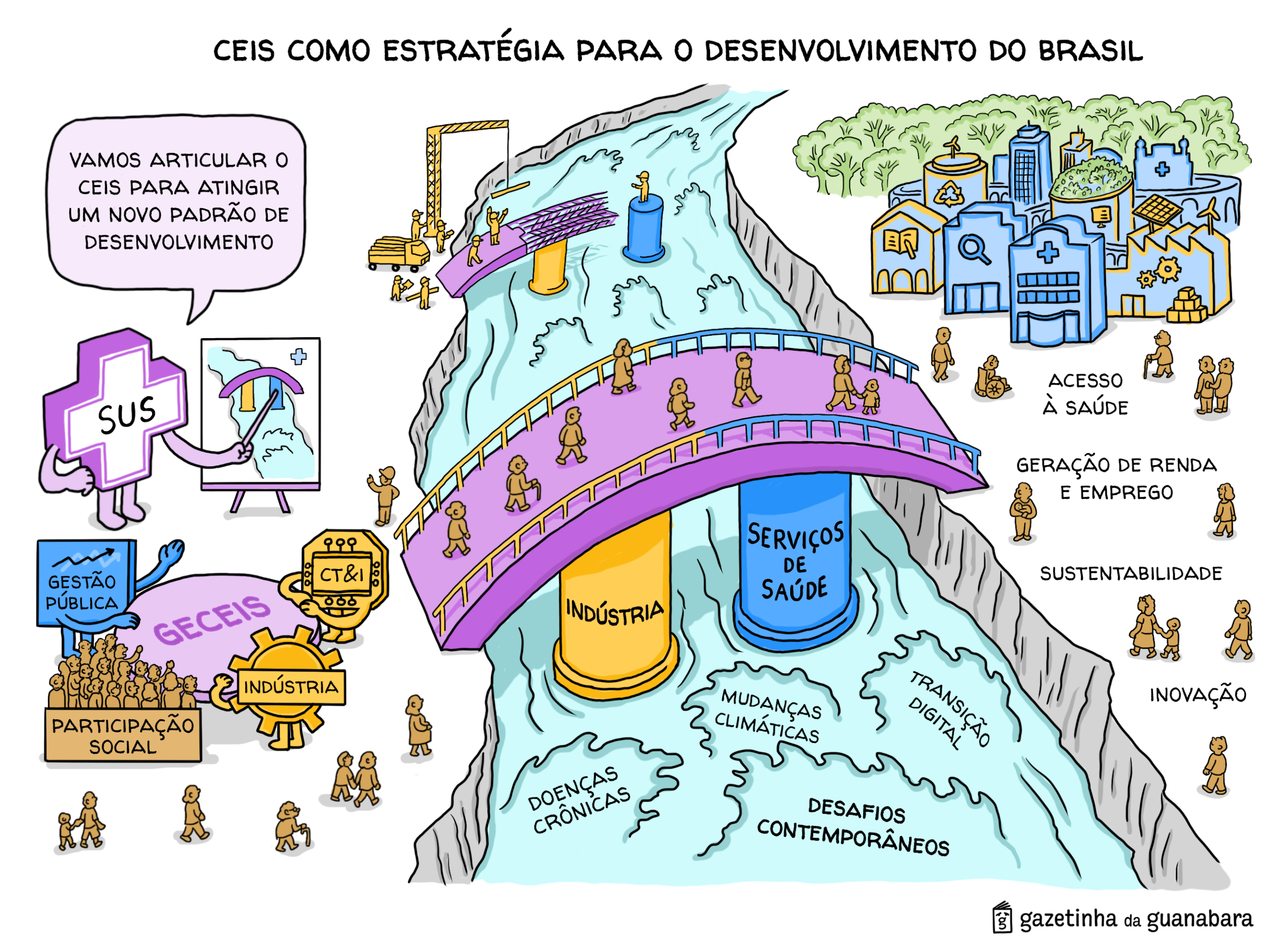 O CEIS é estratégico para fortalecer o SUS e impulsionar a reindustrialização brasileira. Os desenhos mostram como saude, inovação e produção devem caminhar juntas para construir um país mais justo e soberano.